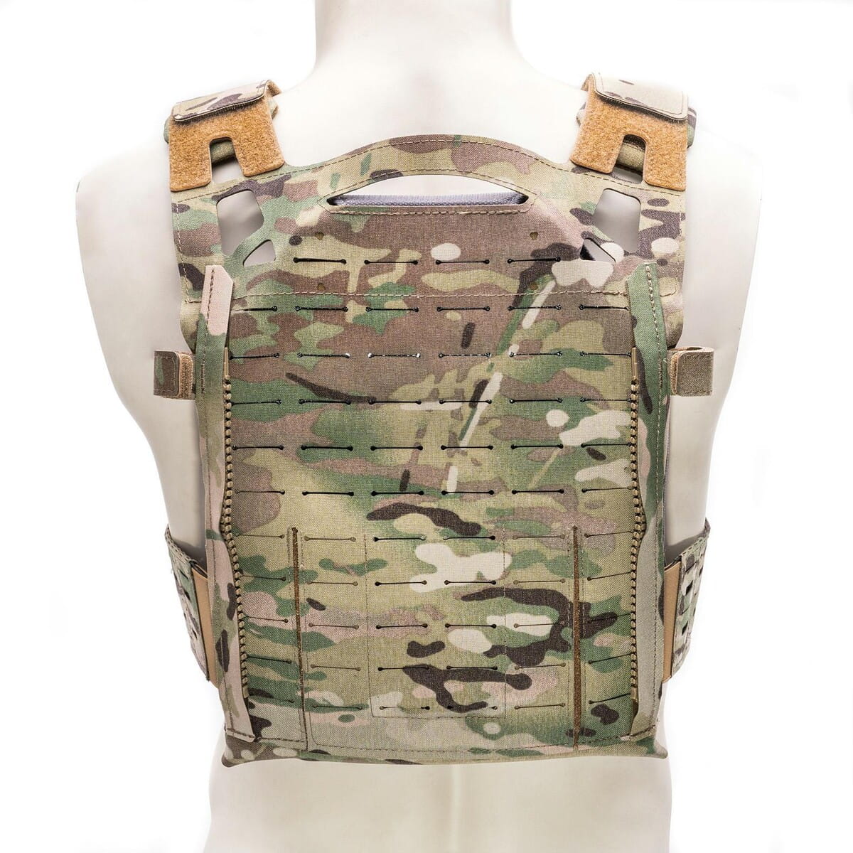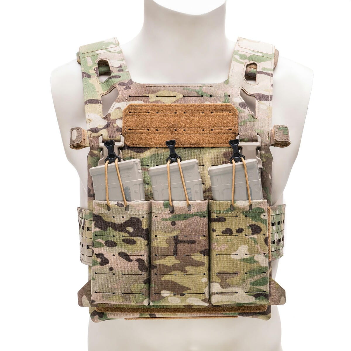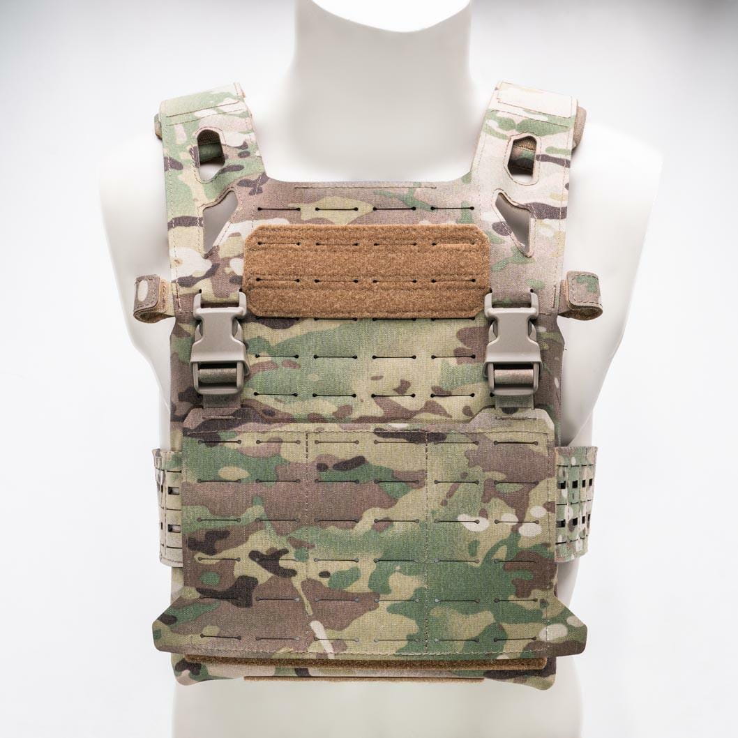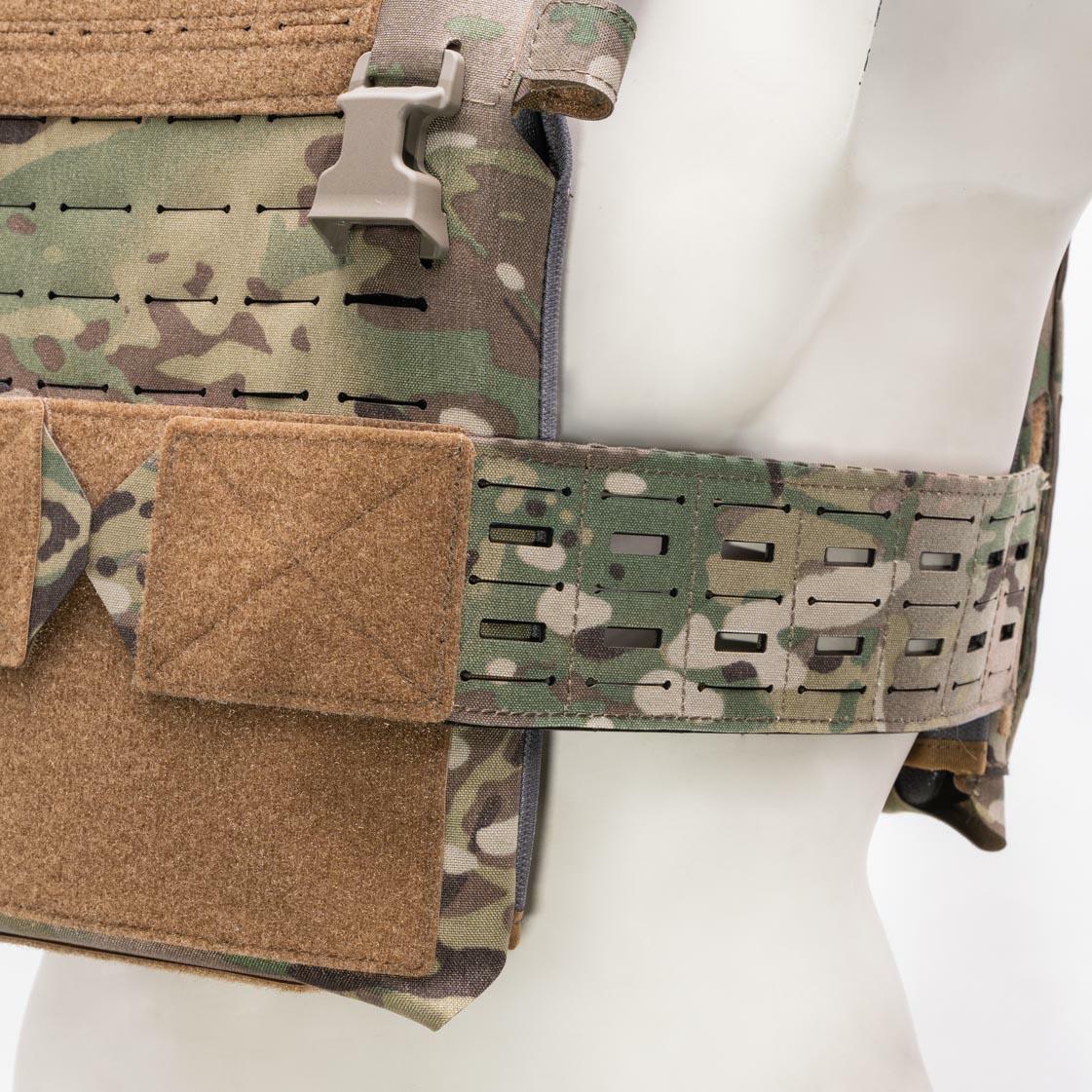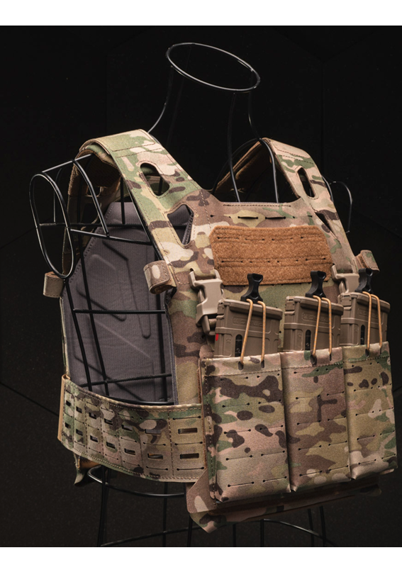 • Zintegrowana, laserowo wycięta platforma MOLLE na przodzie i tyle noszaka (4/6x12 i 6x12) z naszytymi elementami samoczepnymi do mocowania elementów identyfikacyjnych